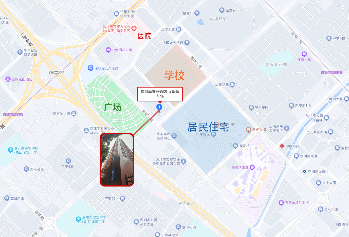 福朋喜來登立體停車場(chǎng)坐落于深圳市寶安區(qū)中心地帶,位于知名五星級(jí)酒店福朋喜來登的東南側(cè),新安中學(xué)西南側(cè),向東與甲岸社區(qū)(住宅小區(qū))相望。